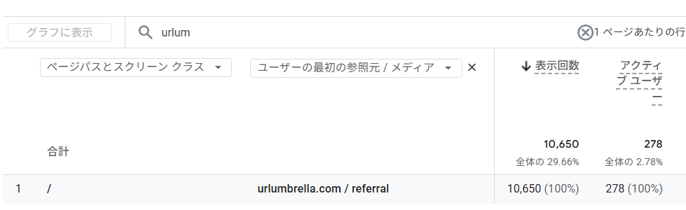 4. 表示回数が爆増しているページ行に、スパムっぽいドメインが出ていないか確認