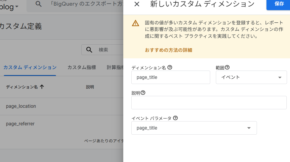 カスタムディメンション設定後は、
